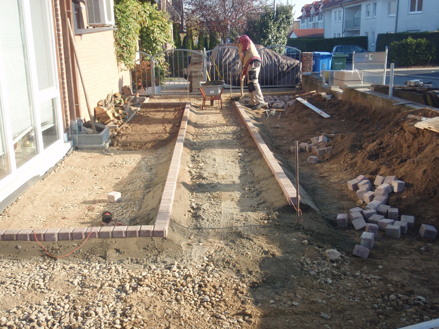Sie haben gebaut. Wir kümmern uns um Wege, Eingangsbereich und Garagenzufahrt, befestigen PKW-Stellplätze und Terrassen. Dabei muss ein origineller Belag gar nicht teuer sein. Grafisch-quadratisch, modern-diagonal, elegant-polygonal; geradlinig oder organisch geschwungen, Naturstein oder Werkstein, mit und ohne Mustert, Pflaster und Platten, Platten und Klinker... Alles ist möglich.